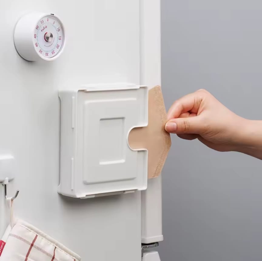 Mantén tu estación de café impecablemente organizada y tus filtros protegidos con nuestro Dispensador de Filtros de Diseño Dual. Este accesorio es la solución perfecta para los entusiastas que dominan tanto la extracción cónica del V60 como la plana de la Kalita Wave.